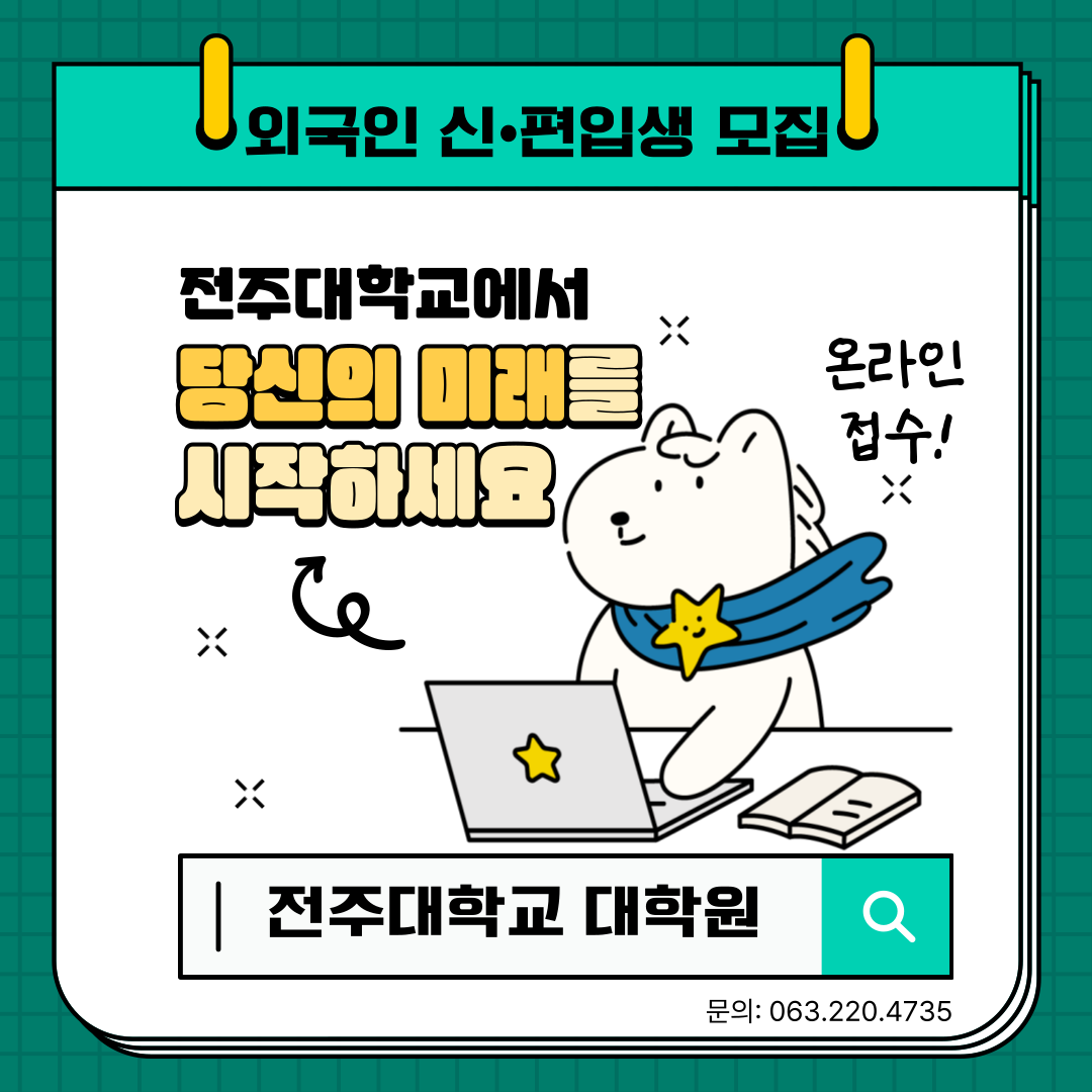 | 원서접수/입학상담: 국제교류원(☎ 063-220-3199) |